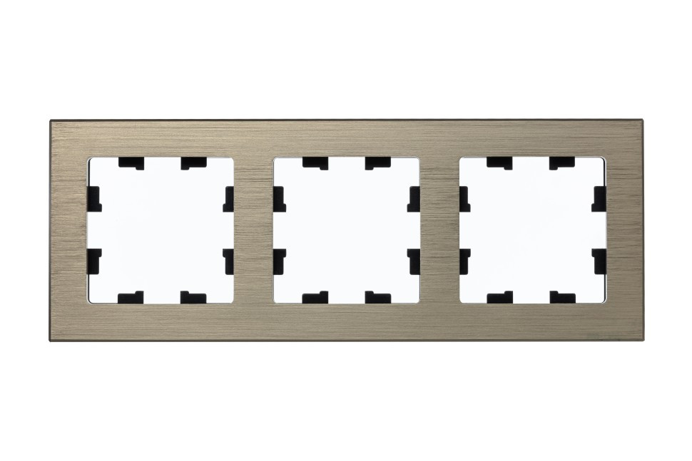 Рамка коллекции AtlasDesign Nature (цвет металл латунь) на 3 поста. - Можно устанавливать как вертикально, так и горизонтально. - Латунь будет отлично смотреться в интерьерах с коричневыми, бежевыми и золотистыми оттенками, предавая неповторимую атмосферу помещению. - Позволяет гармонично вписать электроустановочное изделие в интерьер помещения.