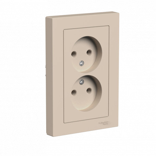 Розетка двойная коллекции AtlasDesign (в сборе, цвет ПЕСОЧНЫЙ) без заземления и без шторок Подходит для использования в сетях напряжением 250 В с током до 16 А. - Лицевые панели из качественного ABS-пластика, устойчивого к царапинам и УФ-излучению. - Двойная розетка позволяет подключить два устройства в одном месте. - Изделие поставляется в комплекте с рамкой того же цвета.