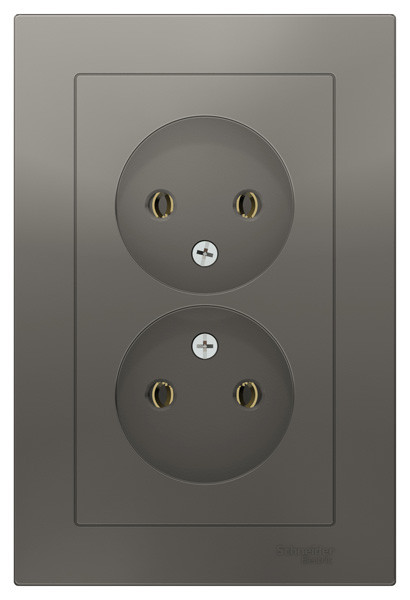 Розетка двойная коллекции AtlasDesign (в сборе, цвет сталь) без заземления и без шторок Подходит для использования в сетях напряжением 250 В с током до 16 А. - Лицевые панели из качественного ABS-пластика, устойчивого к царапинам и УФ-излучению. - Двойная розетка позволяет подключить два устройства в одном месте. - Усиленные прямые монтажные лапки для лучшей фиксации механизма в монтажной коробке.