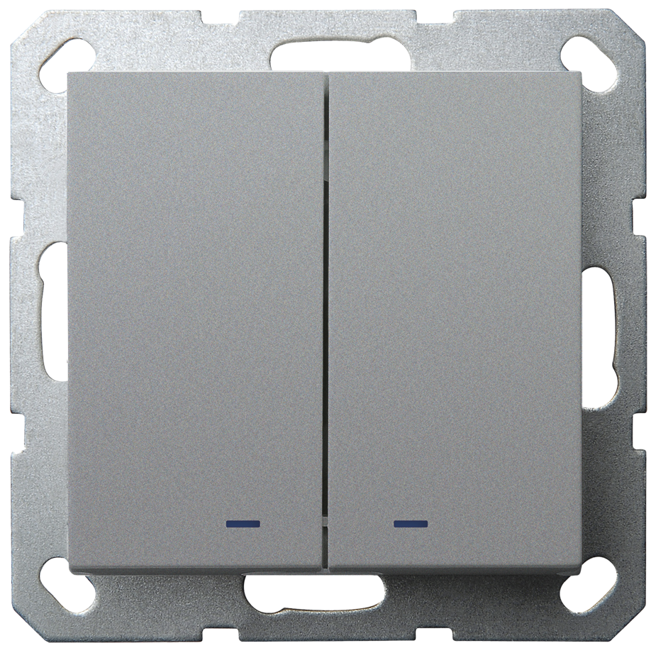 Выключатель двухклавишный со светодиодами 10A 250V~ с накладкой, цвет Алюминий, G3023NS, JASMART