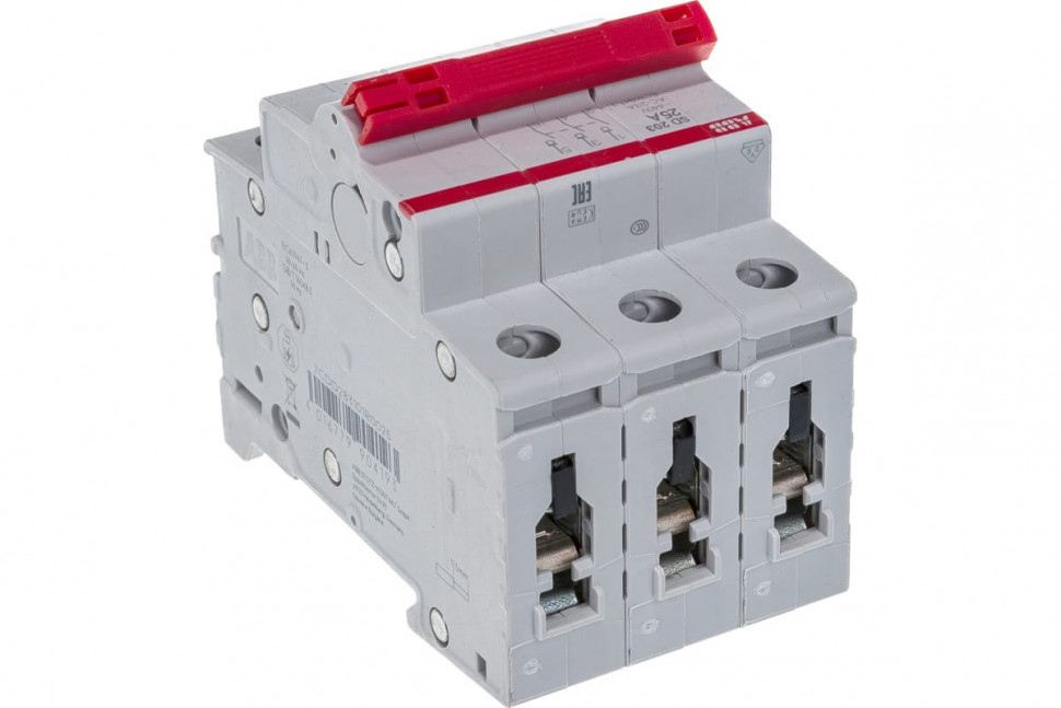ABB SD203 Рубильник 3P 25A рычаг красный – выключатель-разъединитель номинальным током 25А, имеющий три полюса. Данная модель относится к двум категориям использования - AC-23A и DC-21A. Установка происходит в любом положении.