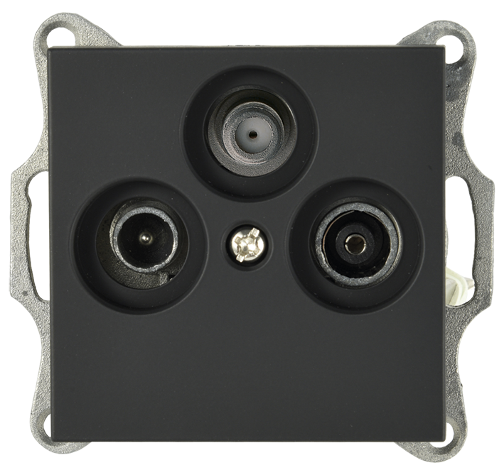 Розетка TV+FM+SAT Ф9.5mm проходная с накладкой, цвет черный матовый (soft touch), G6207PB, JASMART
