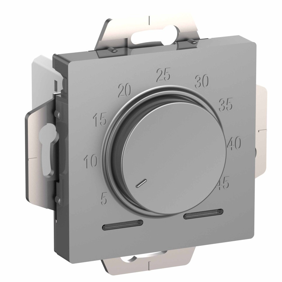 Термостат коллекции AtlasDesign электронный для теплого пола, с датчиком, 10 A в исполнении алюминий Обеспечит комфортное регулирование температуры пола и идеально впишется в интерьер помещений. Ном. напряжение: 230 В Частота: 50 Гц Электронная защита от перенапряжения Диапазон регулирования: от +5 до +45 °С Датчик температуры пола в комплекте (кабель 2,5 м), тип NTC Степень защиты от пыли и влаги: IP20