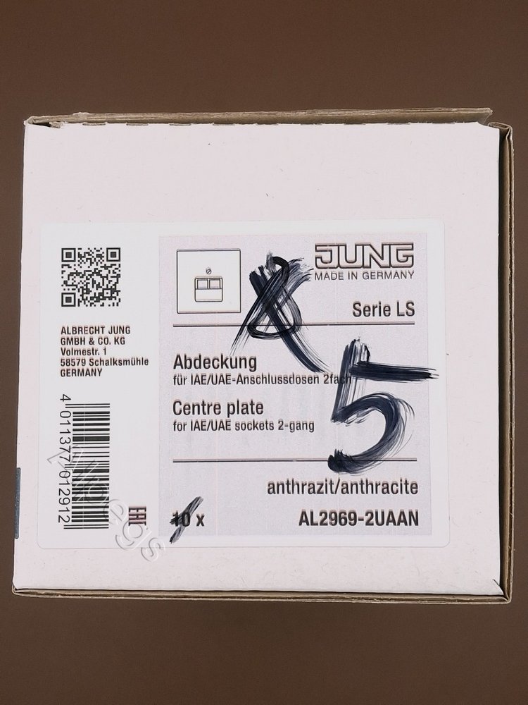 AL2969-2UAAN Jung Крышка для двойных телефонных и компьютерных розеток (UAE), фиксация винтом, металл, антрацит, Aluminium