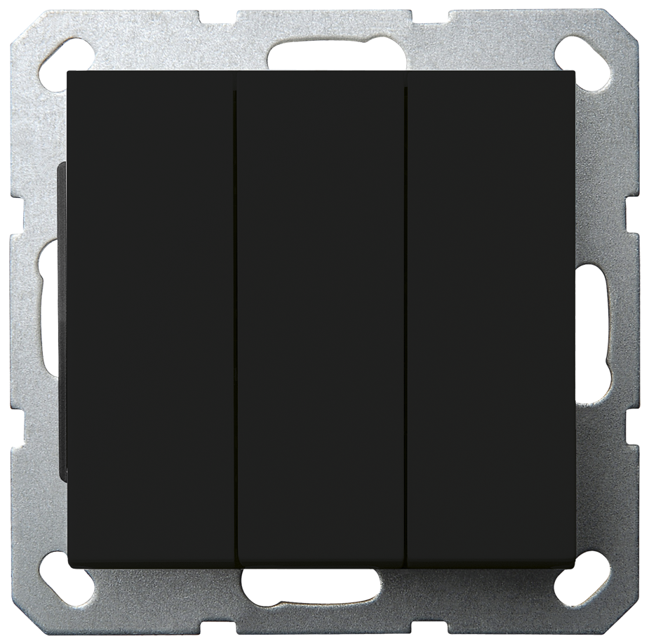 Выключатель трехклавишный 10A 250V~с накладкой, цвет черный матовый (soft touch) , G3031PB, JASMART