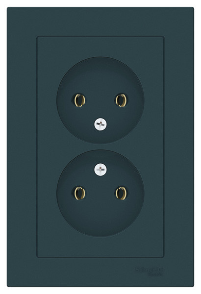 Розетка двойная коллекции AtlasDesign (в сборе, цвет изумруд) без заземления и без шторок Подходит для использования в сетях напряжением 250 В с током до 16 А. - Лицевые панели из качественного ABS-пластика, устойчивого к царапинам и УФ-излучению. - Двойная розетка позволяет подключить два устройства в одном месте. - Изделие поставляется в комплекте с рамкой того же цвета. - Усиленные прямые монтажные лапки для лучшей фиксации механизма в монтажной коробке.