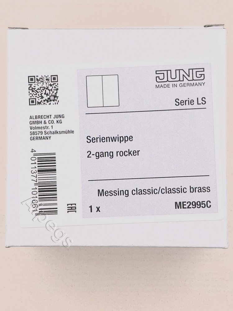 ME2995C Jung Двойная клавиша для балансирных механизмов выключателей (кнопок), в комплекте с CD95HP (крепежный элемент), металл, латунь classic, Messing
