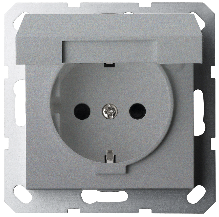 Розетка SHUKO© с крышкой и защитными шторками 16A 250V~ 2P+T, цвет Алюминий, G5505S, JASMART