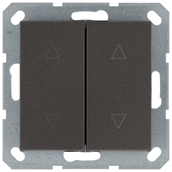 Выключатель двухклавишный для штор 10A 250V~ с накладкой, цвет Мокко, G3028Z, JASMART