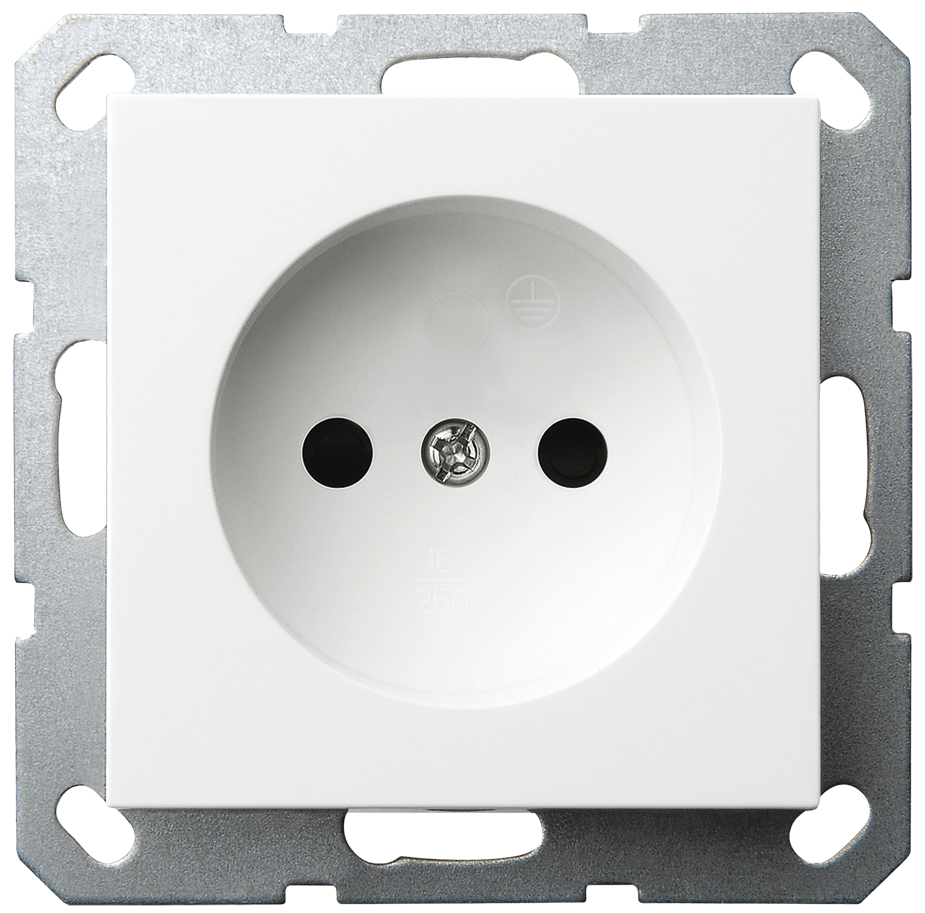Розетка без заземления с защитными шторками 16A 250V~ 2P, цвет белый глянцевый, G5503W, JASMART