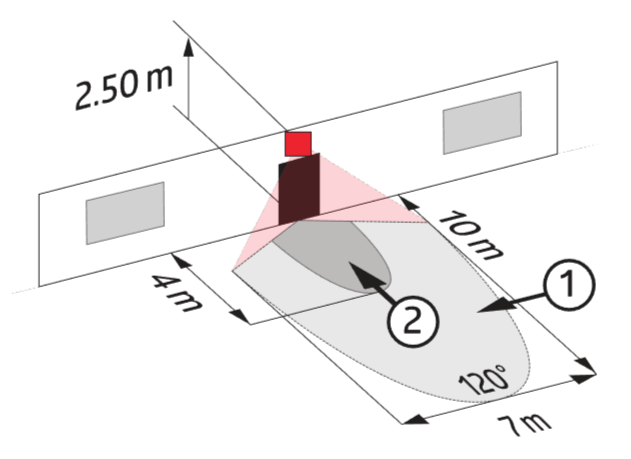 | Зона обнаружения: | горизонтальный 120° (настенный монтаж) |