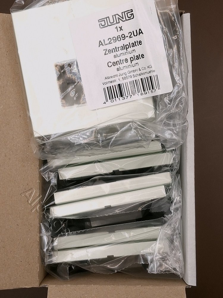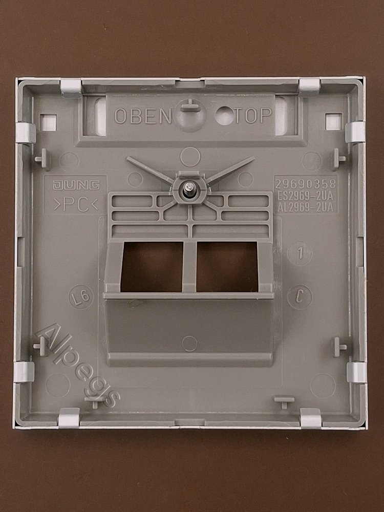 AL2969-2UA Jung Крышка для двойных телефонных и компьютерных розеток (UAE), фиксация винтом, металл, алюминий, Aluminium