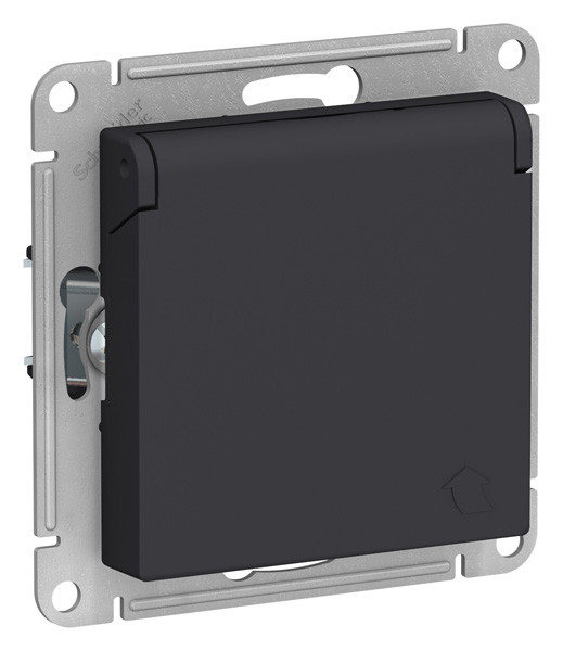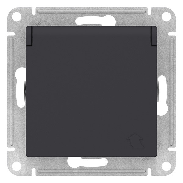ATN001046 - AtlasDesign РОЗЕТКА с заземлением со шторками с крышкой, 16А, IP20, механизм, КАРБОН