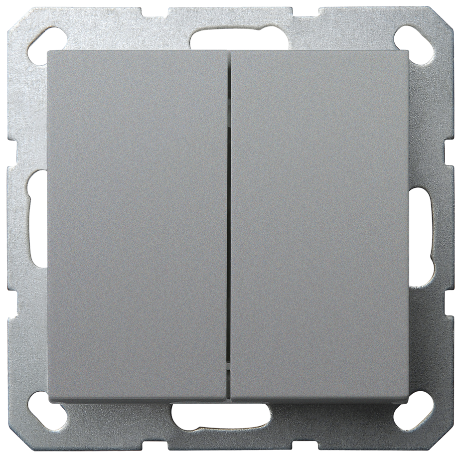 Выключатель двухклавишный проходной 10A 250V~ с накладкой, цвет Алюминий, G3022S, JASMART