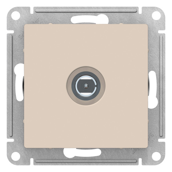 Механизм коллекции AtlasDesign в бежевом исполнении антенны коннектора TV. - Лицевые панели из качественного ABS-пластика, устойчивого к царапинам и УФ-излучению. - Усиленные прямые монтажные лапки для лучшей фиксации механизма в монтажной коробке.