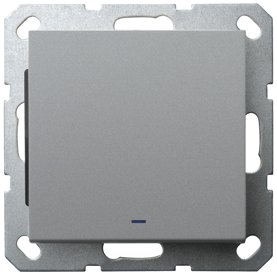 Выключатель одноклавишный со светодиодом 10A 250V~ с накладкой, цвет Алюминий, G3011NS, JASMART