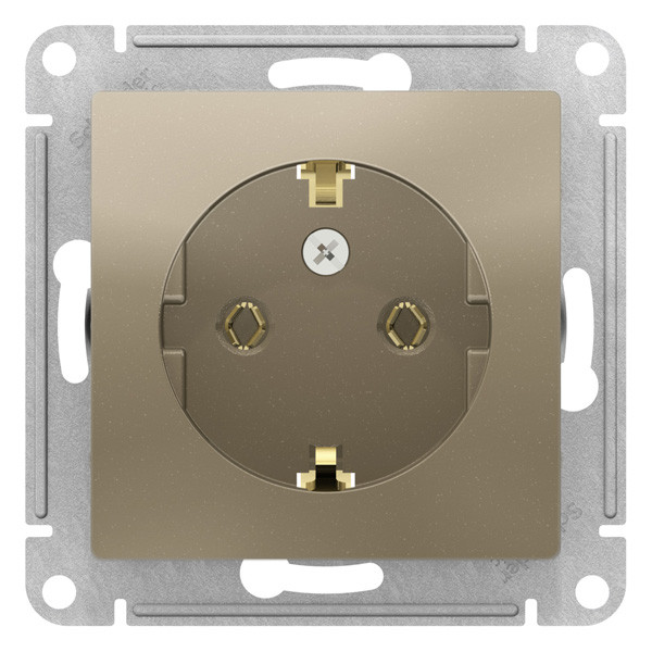 Механизм коллекции AtlasDesign в исполнении шампань розетки одинарной с заземлением и без шторок Подходит для использования в сетях напряжением 250 В с током до 16 А. - Заземляющий контакт обеспечивает дополнительную защиту от удара электрическим током. При наличии заземления электрический потенциал уходит в землю, защищая человека. - Лицевые панели из качественного ABS-пластика, устойчивого к царапинам и УФ-излучению. - Усиленные прямые монтажные лапки для лучшей фиксации механизма в монтажной коробке.
