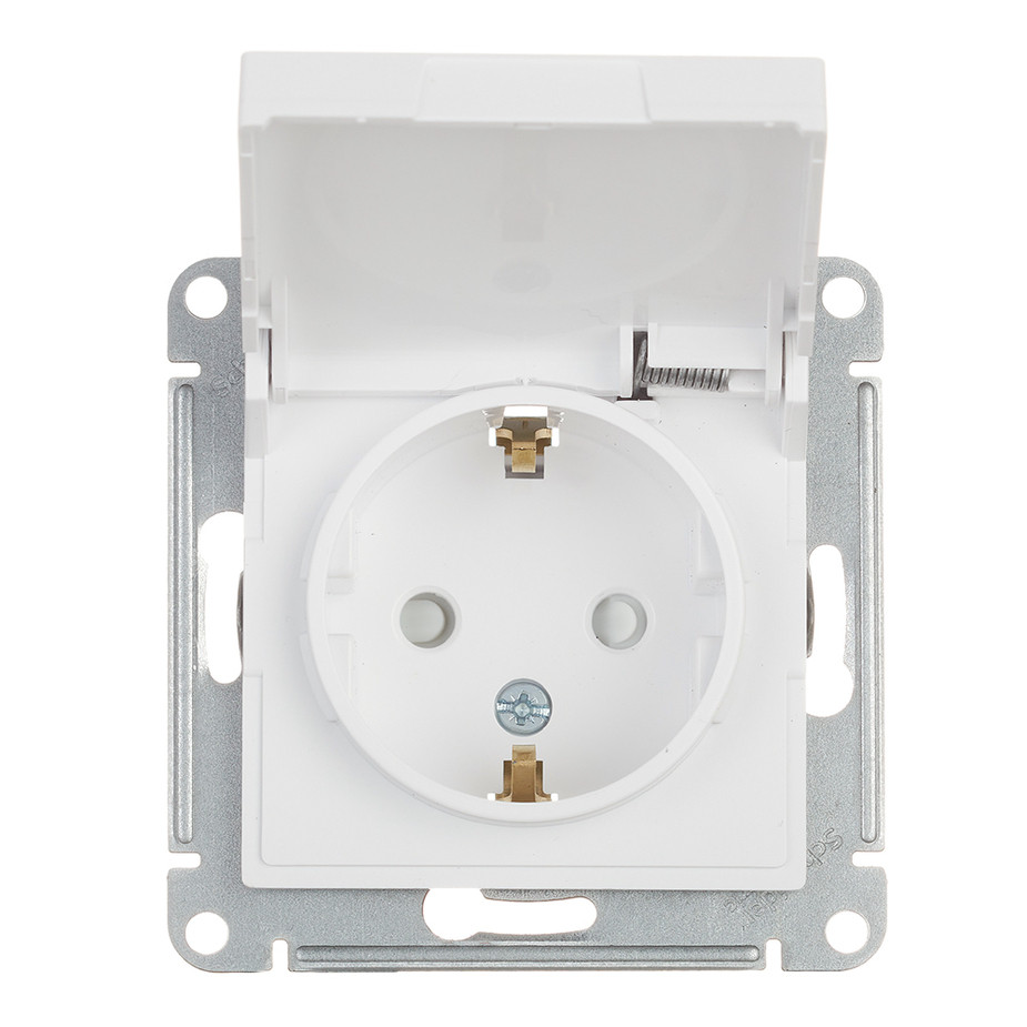 ATN000146 - AtlasDesign РОЗЕТКА с заземлением со шторками с крышкой, 16А, IP20, механизм, БЕЛЫЙ