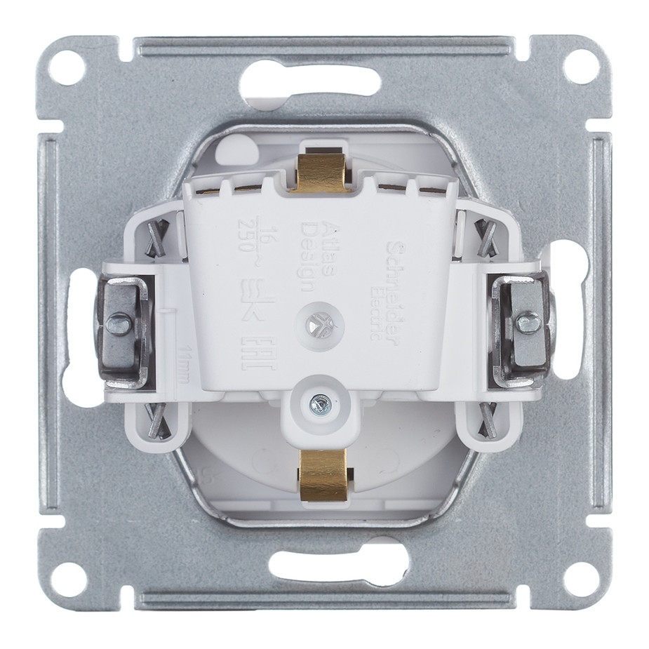 Механизм коллекции AtlasDesign в исполнении белый розетки одинарной с заземлением, шторками и крышкой Подходит для использования в сетях напряжением 250 В с током до 16 А. - Пластик с ионами серебра в белом исполнении обеспечивает антибактериальный эффект. - Заземляющий контакт обеспечивает дополнительную защиту от удара электрическим током. При наличии заземления электрический потенциал уходит в землю, защищая человека. - Лицевые панели из качественного ABS-пластика, устойчивого к царапинам и УФ-излучению.