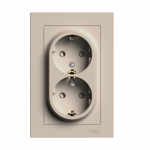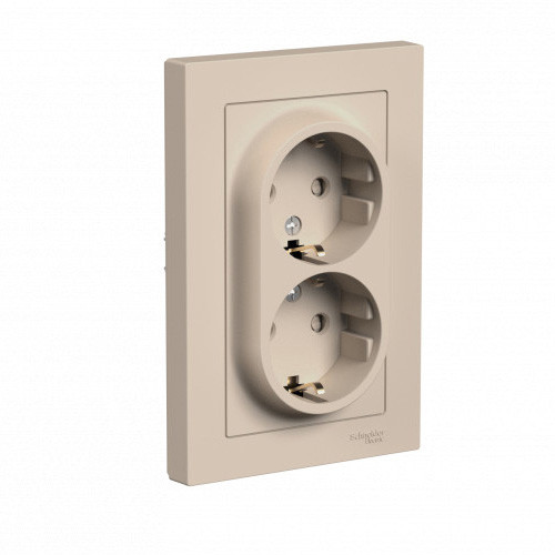 ATN001226 - AtlasDesign РОЗЕТКА двойная с заземлением со шторками, 16А, в сборе, ПЕСОЧНЫЙ