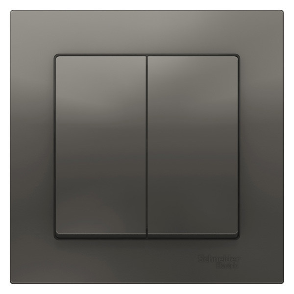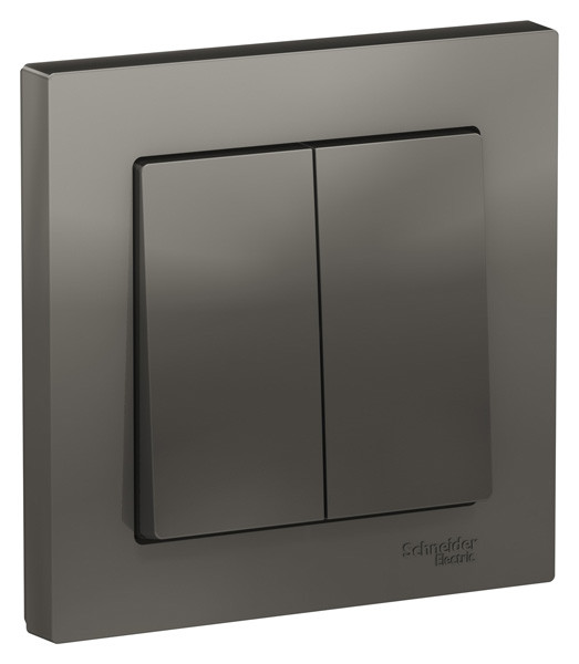 Выключатель коллекции AtlasDesign (в сборе, цвет сталь) 2-клавишный Применим для подключения к сетям 250 В с номинальным током 10 А.. - Двухклавишный выключатель позволяет управлять двумя источниками света с одной точки. - Лицевые панели из качественного ABS-пластика, устойчивого к царапинам и УФ-излучению. - Изделие поставляется в комплекте с рамкой того же цвета. - Усиленные прямые монтажные лапки для лучшей фиксации механизма в монтажной коробке.