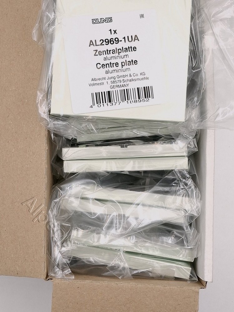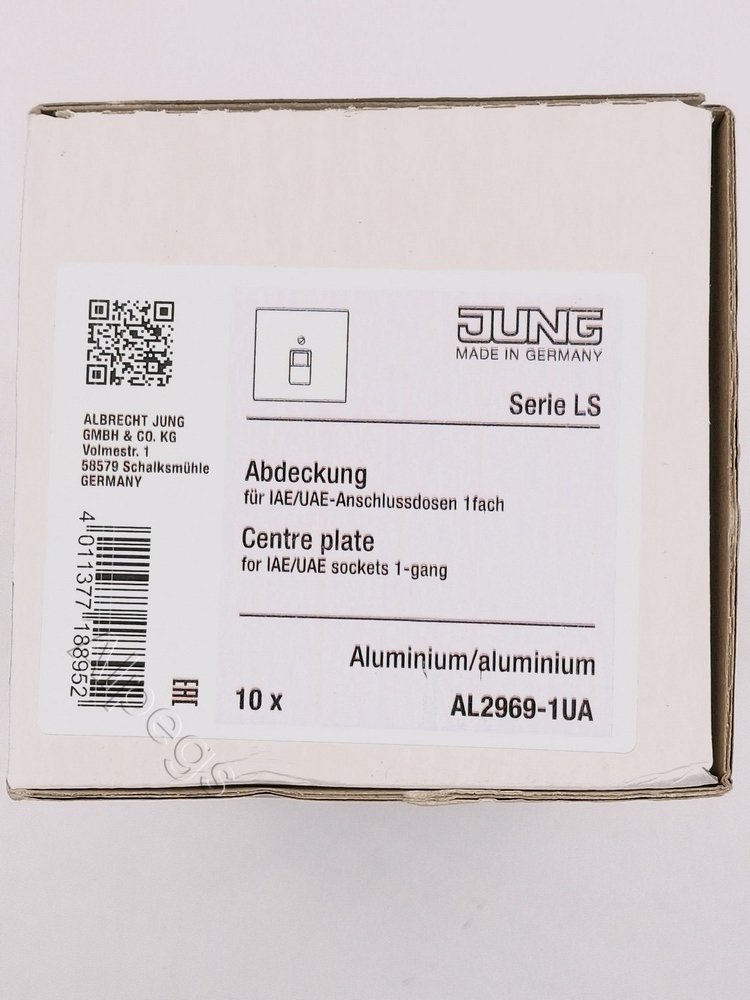 AL2969-1UA Jung Крышка для одинарных телефонных и компьютерных розеток (UAE), фиксация винтом, металл, алюминий, Aluminium