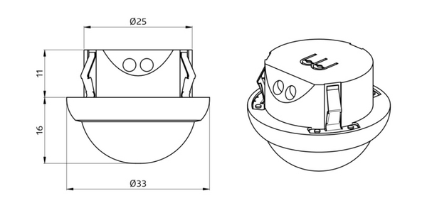 Мини мультисенсор DALI-LINK потолочный 360°, скрытый монтаж в подвесной потолок, диапазон обнаружения: перпендикулярно - Ø 10 м, фронтально - Ø 6 м, зона присутствия - Ø 4 м; высота монтажа: мин. 2 м / макс. 5 м / рекомендуемая 2,5 м; настройки: PBM-DALI-LINK-4W-BLE + Смартфон с приложением DALI LINK (iOS / Android); сетевое напряжение по шине DALI, макс. 22,5 V DC; размеры Ø 33 x 27 мм, IP20, белый.Характеристики: