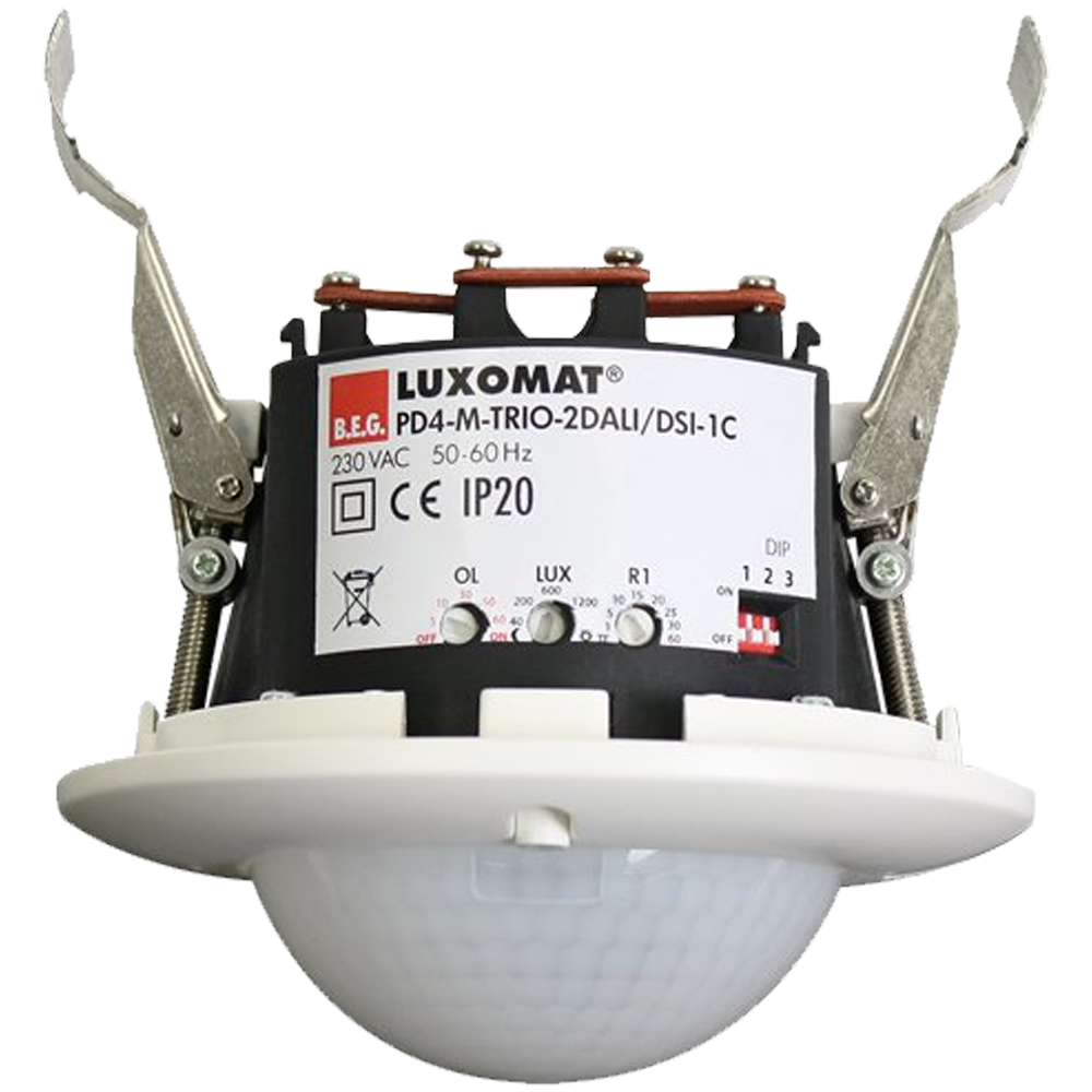 Датчик присутствия для двух отдельных групп освещения, для управления освещением в зависимости от дневного света Один беспотенциальный канал переключения для управления оборудованием (HVAC) или освещением Два независимых подвижных датчика освещенности Одна общая зона обнаружения 2 интерфейса DALI/DSI для совместного управления цифровыми электронными балластами с регулируемой яркостью Переключение между DALI и DSI возможно с помощью пульта дистанционного управления Функция освещения ориентации Реле с вольфрамовым предварительным контактом, оптимизированное для светодиодных нагрузок Версия в качестве основного устройства - Зона обнаружения может быть расширена с помощью подчиненных устройств