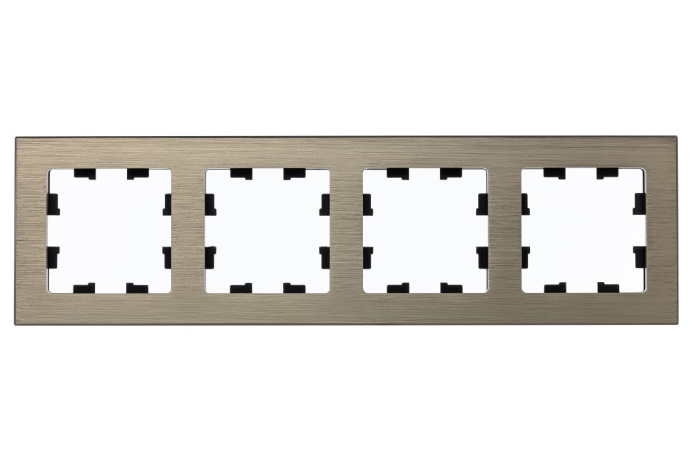 Рамка коллекции AtlasDesign Nature (цвет металл латунь) на 4 поста. - Можно устанавливать как вертикально, так и горизонтально. - Латунь будет отлично смотреться в интерьерах с коричневыми, бежевыми и золотистыми оттенками, предавая неповторимую атмосферу помещению. - Позволяет гармонично вписать электроустановочное изделие в интерьер помещения.