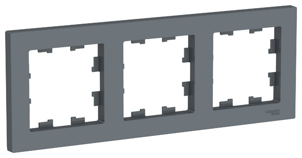 Рамка коллекции AtlasDesign в исполнении грифель трёхместная. - Можно устанавливать как вертикально, так и горизонтально. - Лицевые панели из качественного ABS-пластика, устойчивого к царапинам и УФ-излучению. - Позволяет гармонично вписать электроустановочное изделие в интерьер помещения.