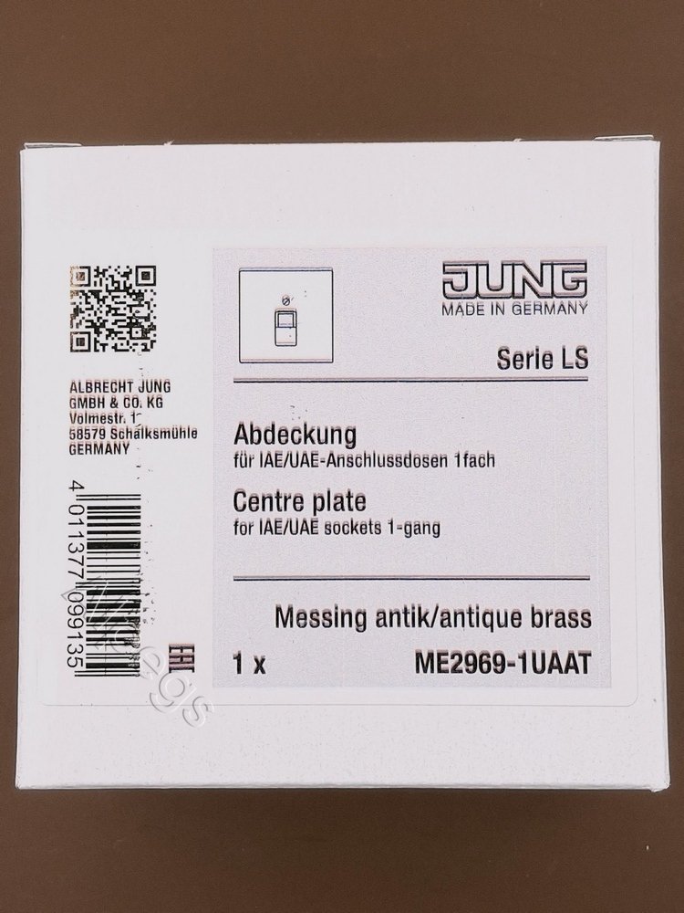 ME2969-1UAAT Jung Крышка для одинарных телефонных и компьютерных розеток (UAE), фиксация винтом, металл, латунь antik, Messing