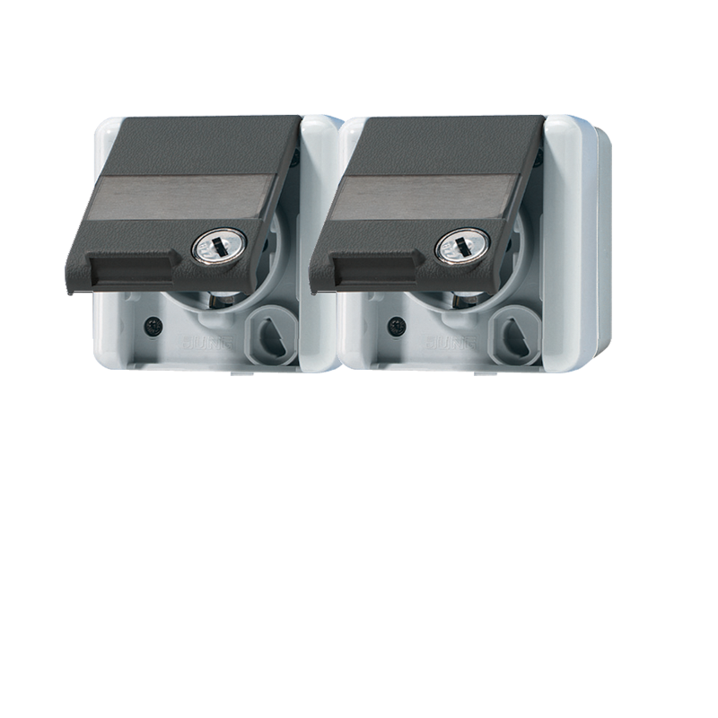 8220NAWSL Двойная горизонтальная SCHUKO-розетка 16A 250V с полем для надписи IP44