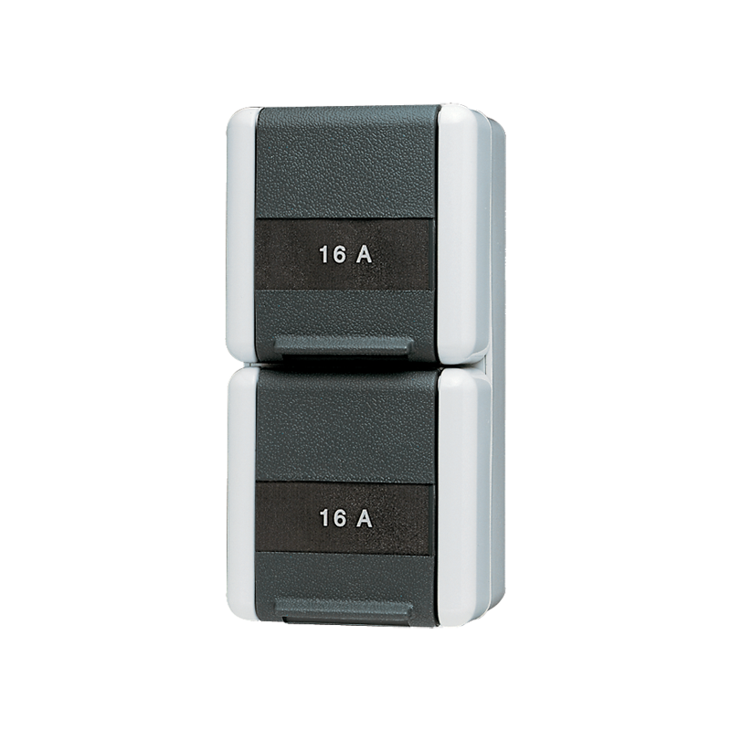 822NAW Двойная SCHUKO-розетка 16A 250V с полем для надписи; для накладного монтажа IP44