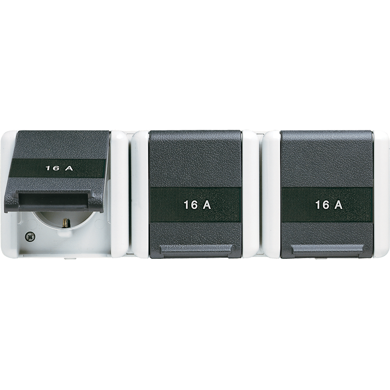 8230NAW Тройная горизонтальная SCHUKO-розетка 16A 250V ; для накладного монтажа IP44