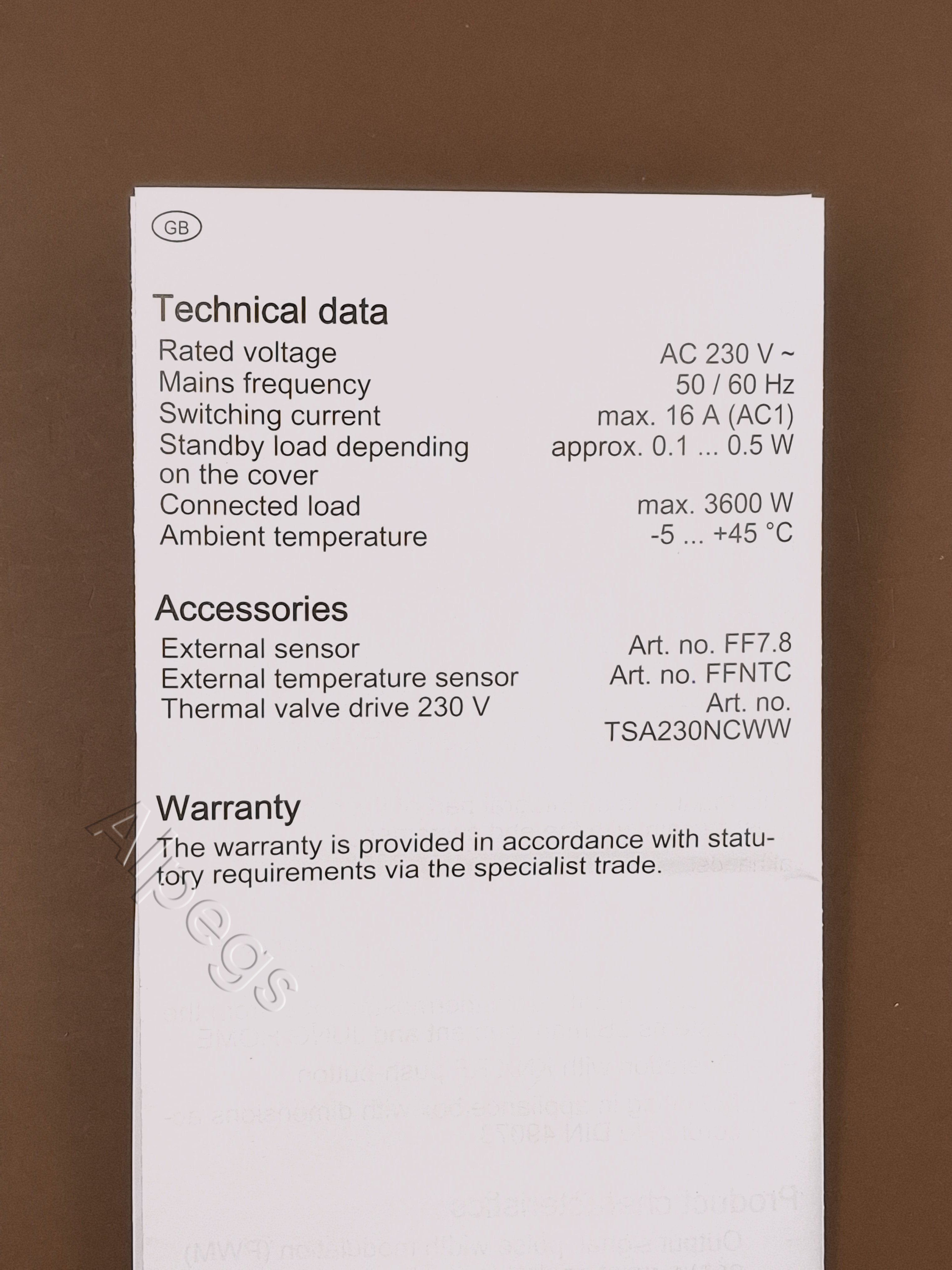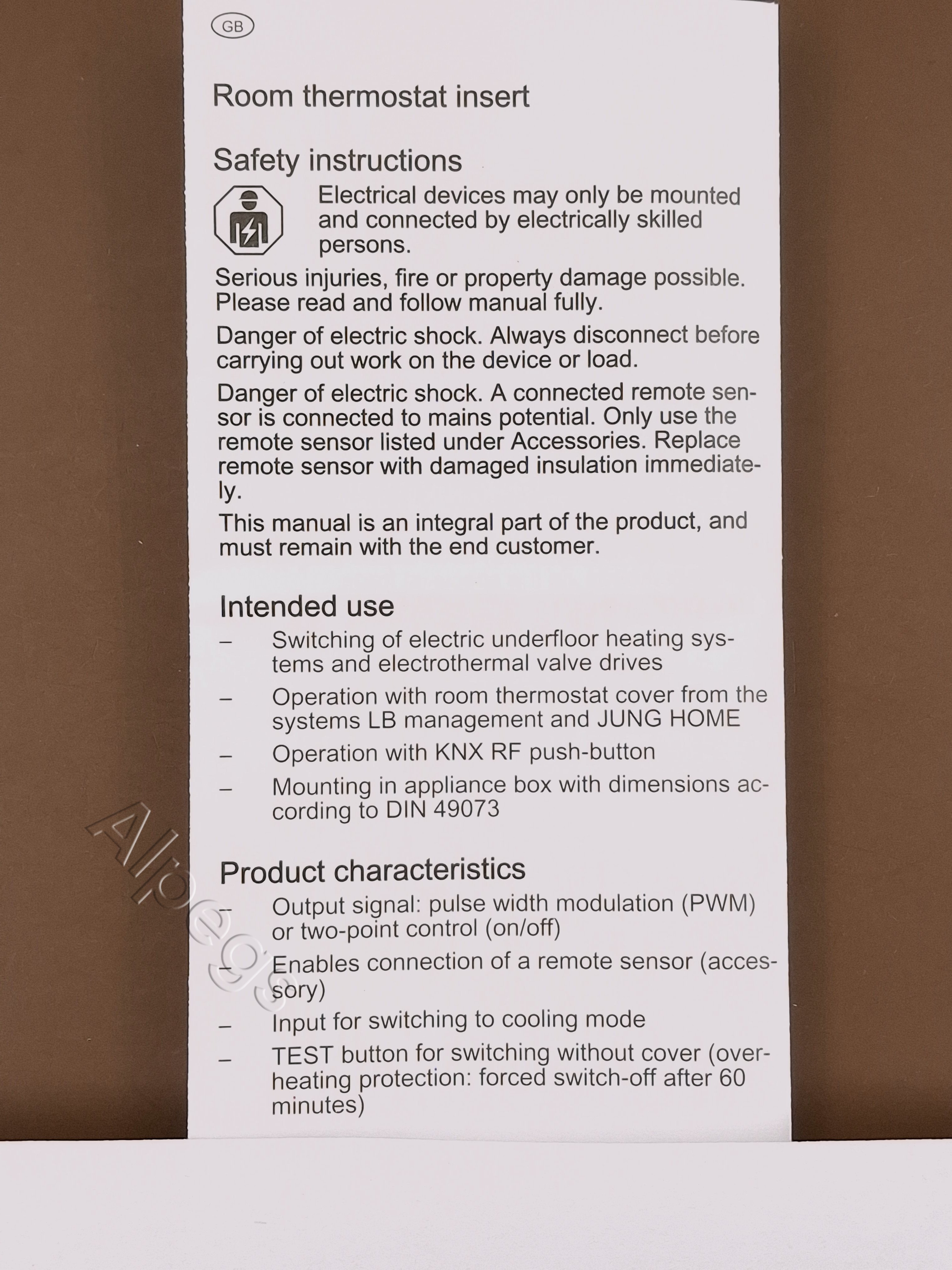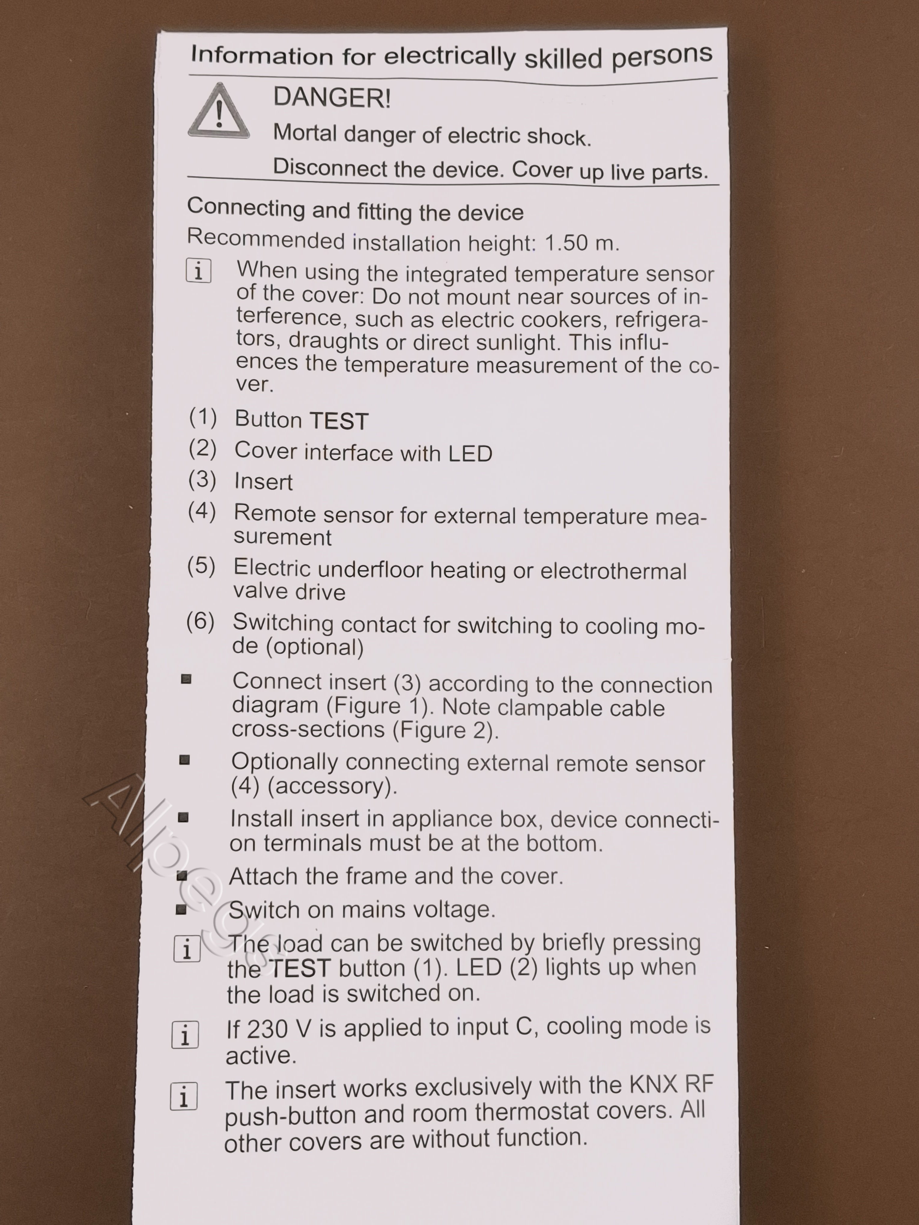 Вставка комнатного термостата, со входом для датчика 1790RTR