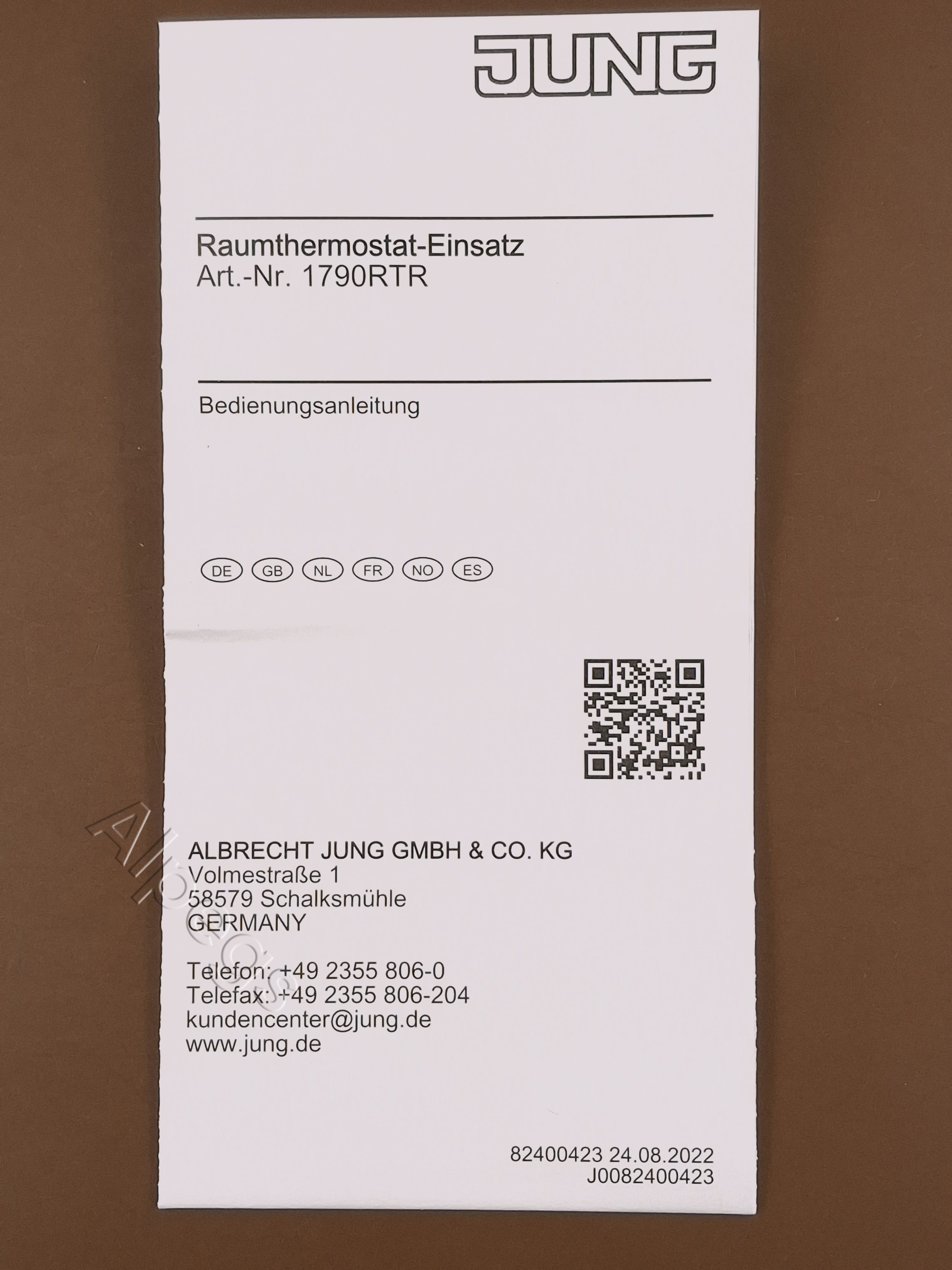 1790RTR Jung Вставка комнатного термостата, со входом для датчика