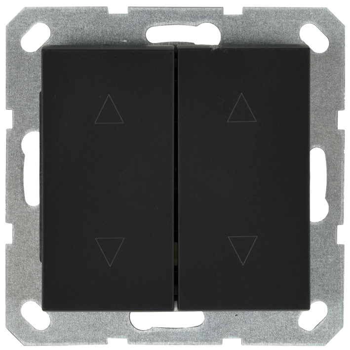 Выключатель двухклавишный для штор 10A 250V~ с накладкой, цвет черный матовый (soft touch), G3028PB, JASMART