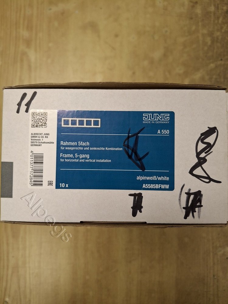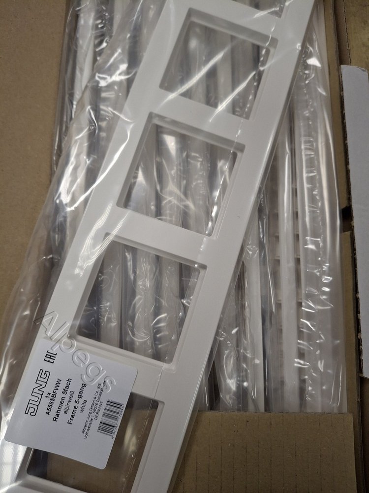 A5585BFWW Jung Рамка для вертикальной и горизонтальной установки, 5 постов, термопласт, белый, A550