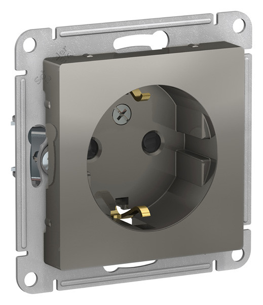 Механизм коллекции AtlasDesign в исполнении сталь розетки одинарной с заземлением и шторками Подходит для использования в сетях напряжением 250 В с током до 16 А. - Заземляющий контакт обеспечивает дополнительную защиту от удара электрическим током. При наличии заземления электрический потенциал уходит в землю, защищая человека. - Лицевые панели из качественного ABS-пластика, устойчивого к царапинам и УФ-излучению. - Усиленные прямые монтажные лапки для лучшей фиксации механизма в монтажной коробке.