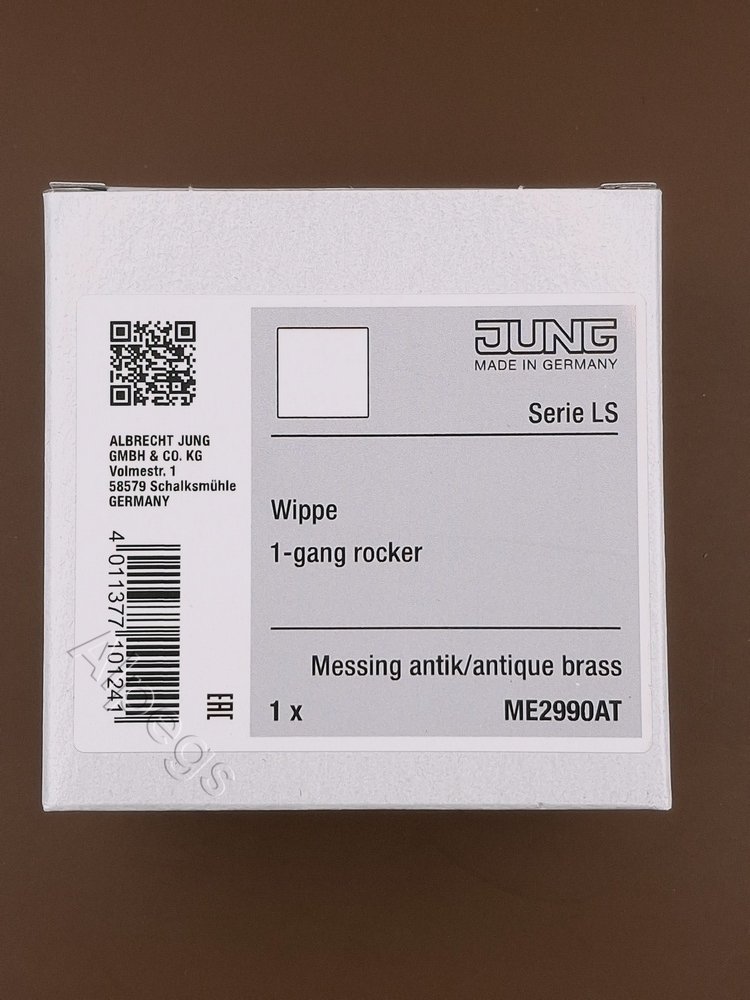 ME2990AT Jung Одинарная клавиша для балансирных механизмов выключателей (кнопок), в комплекте с CD90HP (крепежный элемент), металл, латунь antik, Messing