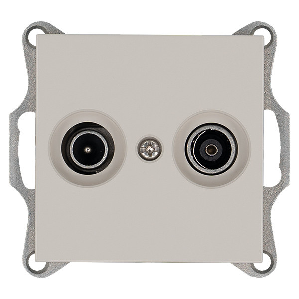 Розетка TV+FM Ф9.5mm проходная с накладкой, цвет Тауп, G6205T, JASMART