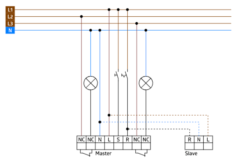 - Коммутационные каналы замыкаются в случае скачков напряжения; освещение остается включенным, пока подключены обе фазы питания светильников