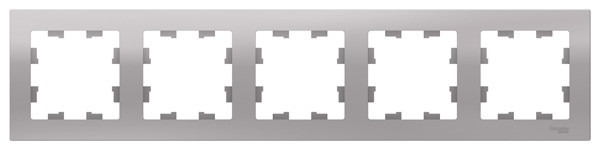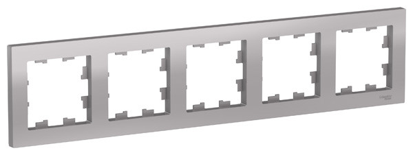 Рамка коллекции AtlasDesign в исполнении алюминий пятиместная. - Можно устанавливать как вертикально, так и горизонтально. - Лицевые панели из качественного ABS-пластика, устойчивого к царапинам и УФ-излучению. - Позволяет гармонично вписать электроустановочное изделие в интерьер помещения.