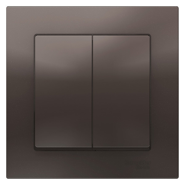 Выключатель коллекции AtlasDesign (в сборе, цвет мокко) 2-клавишный Применим для подключения к сетям 250 В с номинальным током 10 А.. - Двухклавишный выключатель позволяет управлять двумя источниками света с одной точки. - Лицевые панели из качественного ABS-пластика, устойчивого к царапинам и УФ-излучению. - Изделие поставляется в комплекте с рамкой того же цвета. - Усиленные прямые монтажные лапки для лучшей фиксации механизма в монтажной коробке.
