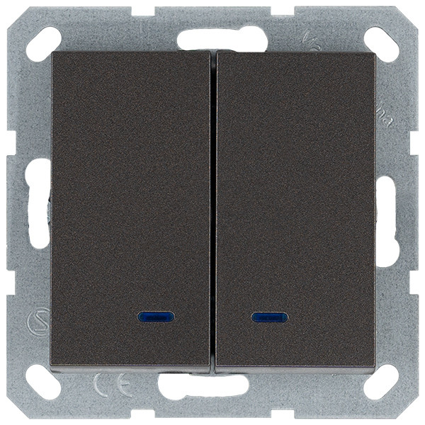 Выключатель двухклавишный со светодиодами 10A 250V~ с накладкой, цвет Мокко, G3023NZ, JASMART