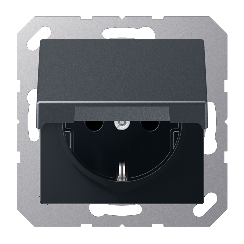 Штепсельная розетка SCHUKO 16A 250V~ с крышкой; термопласт; алюминий, A1520BFKLAL