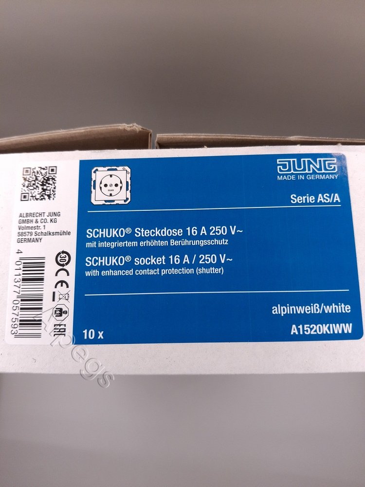 A1520KIWW Штепсельная розетка SCHUKO 16A 250V с защитой от детей; белая