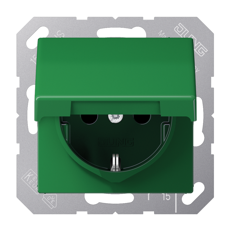 ABAS1520KIKLGN SCHUKO-розетка с откидной крышкой и защитой от детей; зеленая