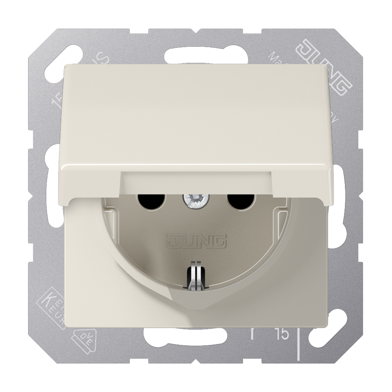 AS1520BFKIKL Штепсельная розетка SCHUKO 16A 250V с крышкой и защитой от детей; слоновая кость