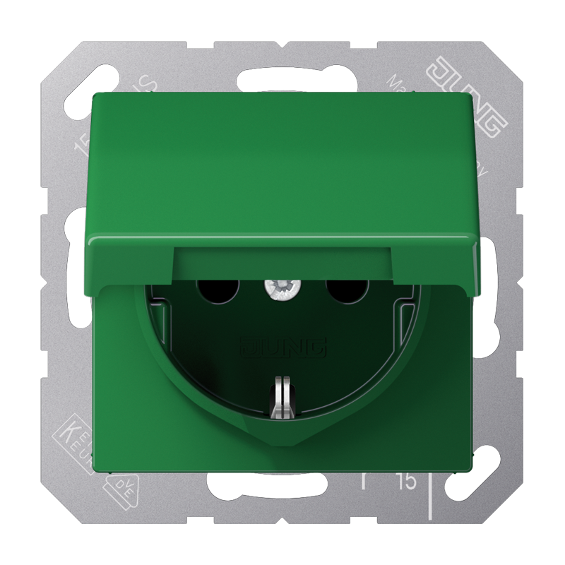 AS1520BFKIKLGN Штепсельная розетка SCHUKO 16A 250V с крышкой и защитой от детей; зеленая